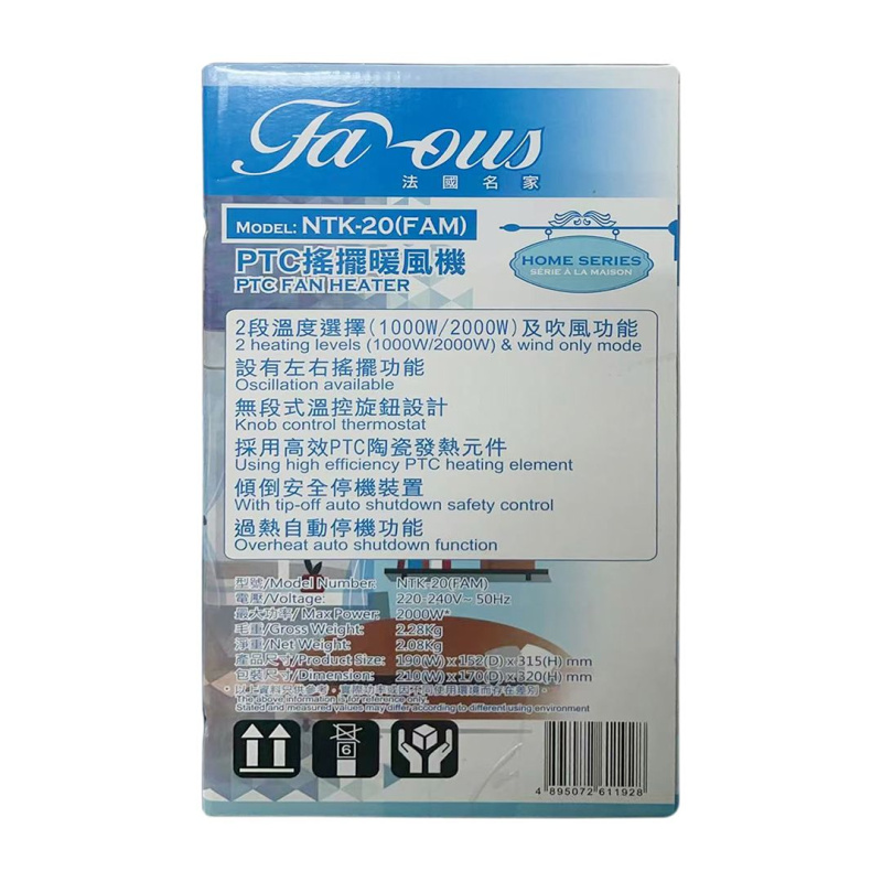 Famous 法國名家 2000W PTC陶瓷搖擺暖風機 NTK-20(FAM)