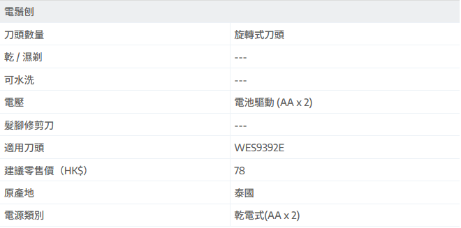 乾電池式(AA x 2) 輪轉式 電腦設計渦旋形刀刃
