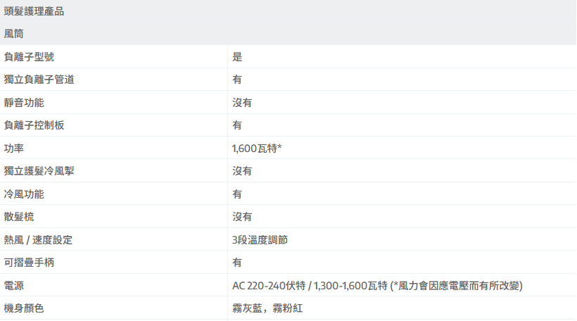 - AC 220-240伏特 / 1,300-1,600瓦特 (*風力會因應電壓而有所改變)