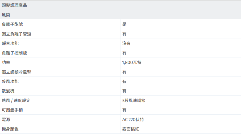 - 面部護理模式,能吹出用於護膚的微弱冷風,保持肌膚柔潤