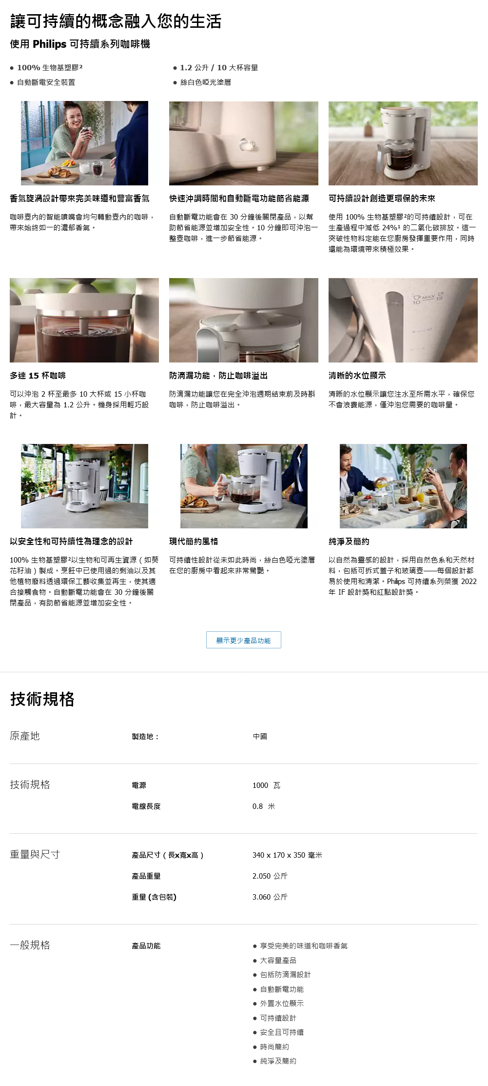 令早餐更加有滋味 每日朝早,都可以盡情享受咖啡嘅美味同香氣。採用100%植物生物基塑料嘅可持續設計,生產過程中減少咗24%嘅二氧化碳排放量,仲具備節能功能,為實現綠色未來行出一小步