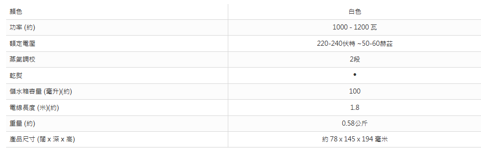 按鍵式操作,乾熨/蒸熨隨你所選,靈活轉換熨燙功能 2段蒸氣強度選擇 機身輕巧,淨重只得0.58公斤,單手使用無負擔